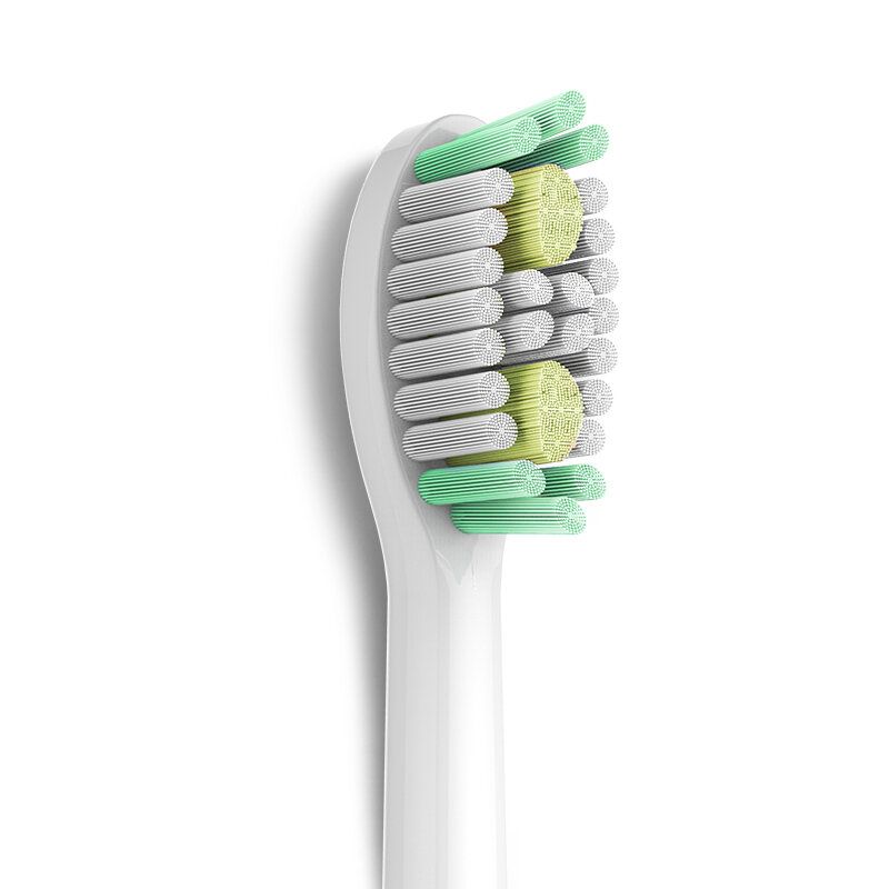 - Сменные головки с тонкой платформой для щетины. Толщина пластика головки зубной щетки в 1,5-2 меньше чем у звуковых зубных щеток других брендов и в 2,5 раза меньше чем у «роторных» зубных щеток.