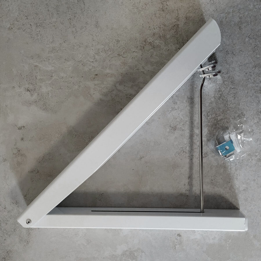 Складна вішалка на стіну з алюмінію. Займає мало місця, в складеному вигляді не помітна. Легко і швидко розкладається, витримує до 15 кг навантаження.