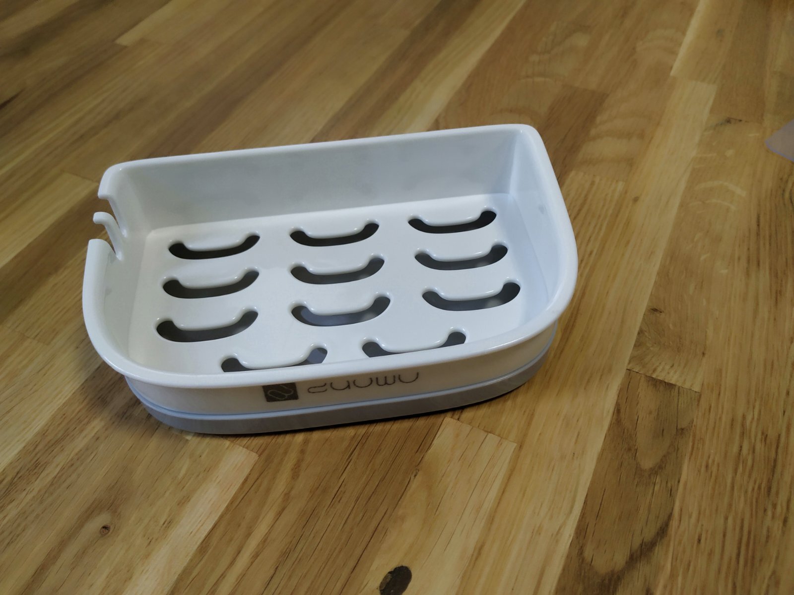 Зручна пластикова мильниця на стіну зі збіркою води та гачком.