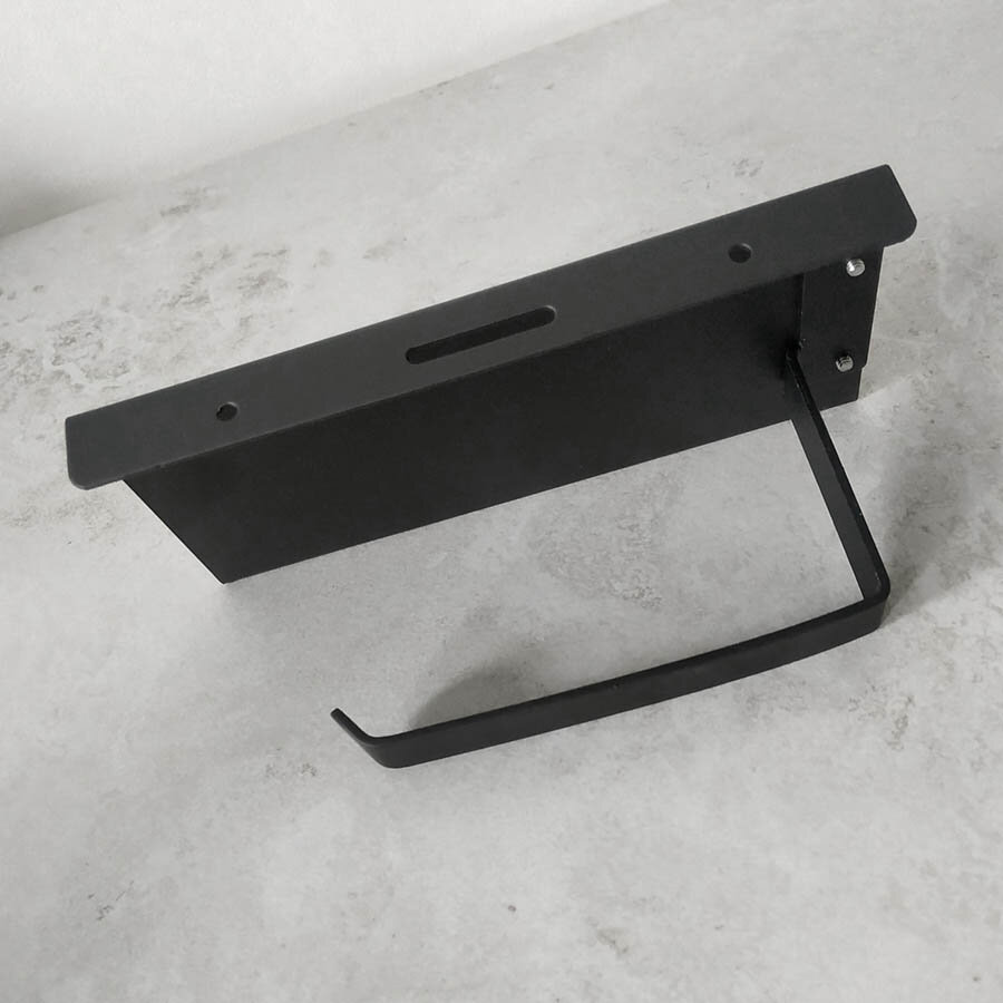 Тримач для туалетного паперу із алюмінію.  Не боїться корозії. Надійне кріплення за допомогою шурупів чи клею (клей не йде в комплекті). Зверху є поличка.