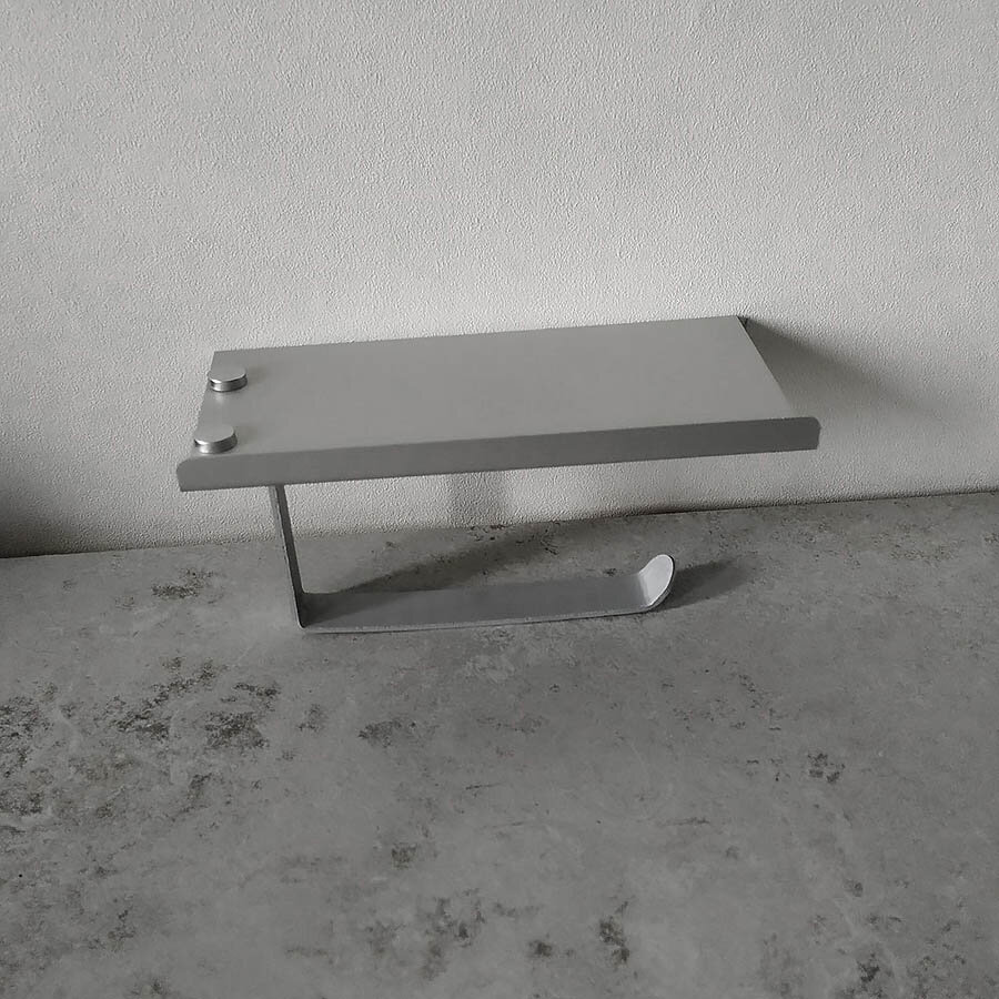 Тримач для туалетного паперу із алюмінію. Не боїться корозії. Надійне кріплення за допомогою шурупів чи клею (клей не йде в комплекті). Зверху є поличка.