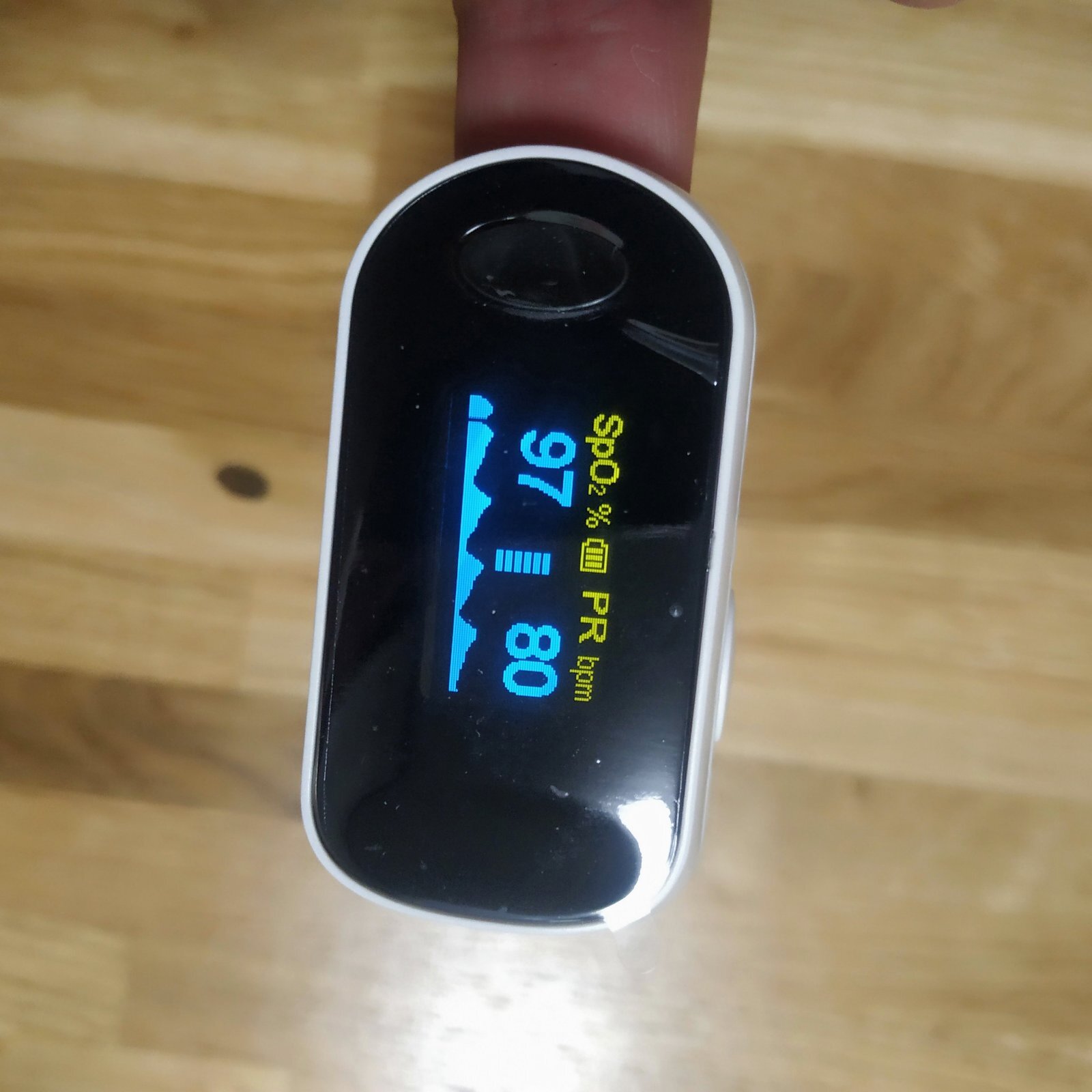 Пульсоксиметр це цифровий оксиметр, який може визначати вміст кисню в крові та пульс у межах +/- 2%.