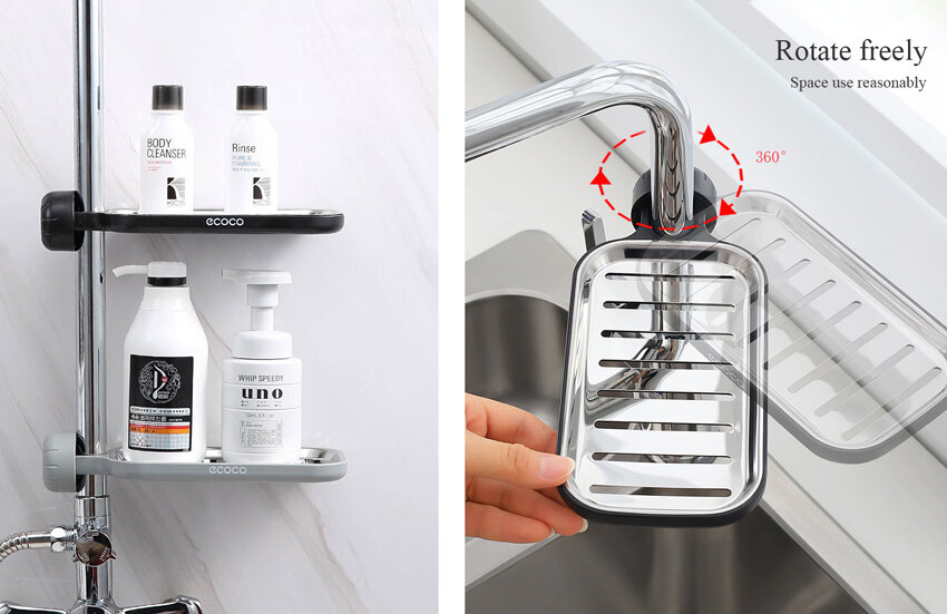 Полиця на душову штангу або змішувач - це відмінне рішення для організації простору навколо раковини або душової кабіни. Такий аксесуар буде ідеальним біля раковини для зберігання та просушування губок, миючих засобів. А також полиця знадобиться в душовій кабіні для мила, мочалок та інших дрібниць. Її кріплення не вимагає свердління або особливих навичок, потрібно просто закрутити утримувач у потрібному для Вас місці. Основа полиці виготовлена із якісного ABS пластику.