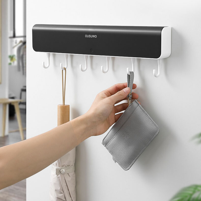 Вешалка на стену из пластика. Выдерживает вес до 5кг. Ширина вешалки - 40 см. Присутствует отсек для хранения мелочей. Простой крепеж.