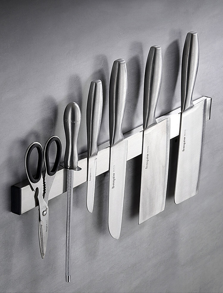 Магнітна планка Fumei це зручний спосіб зберігання ножів або інших металевих кухонних інструментів. Виконана з високоякісної нержавіючої сталі із сильними магнітами на всю довжину. Не впливає на якість ножів і не псує їх зовнішній вигляд, стійка до корозії та дії вологи.