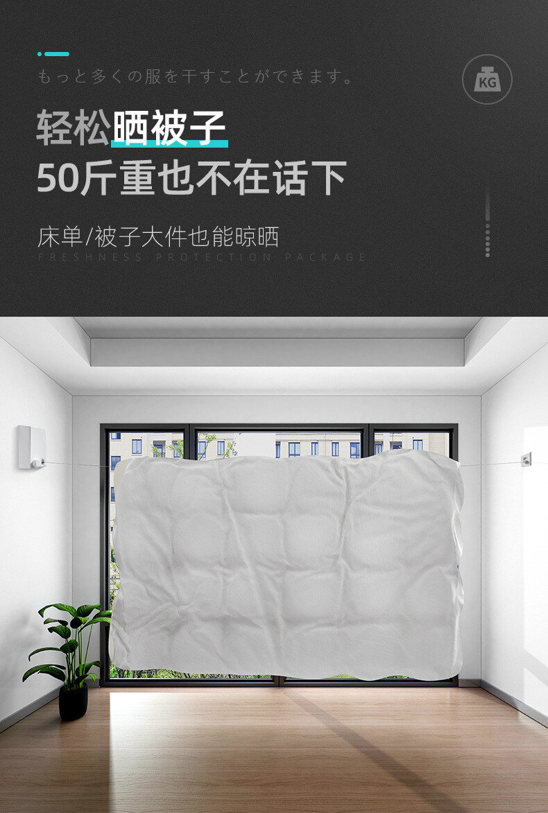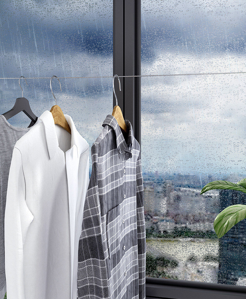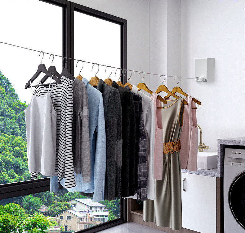 Автоматична мотузка для білизни використовується для сушіння білизни на балконі, у ванній кімнаті, на кухні або в будь-якому іншому зручному місці. Система має фіксатор, завдяки якому трос розтягується на потрібну відстань (максимум 4,2 метра).