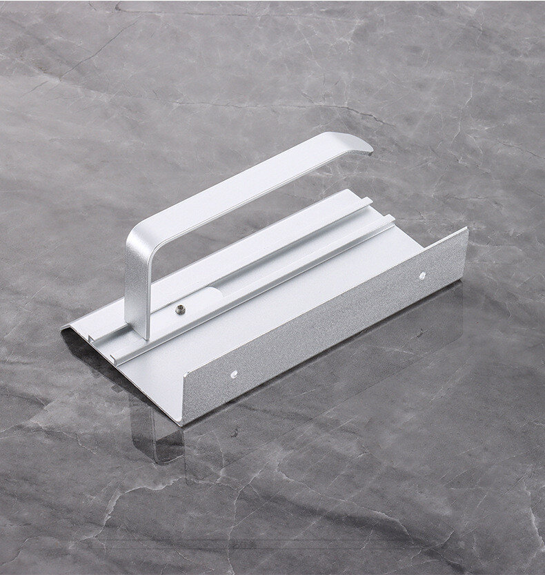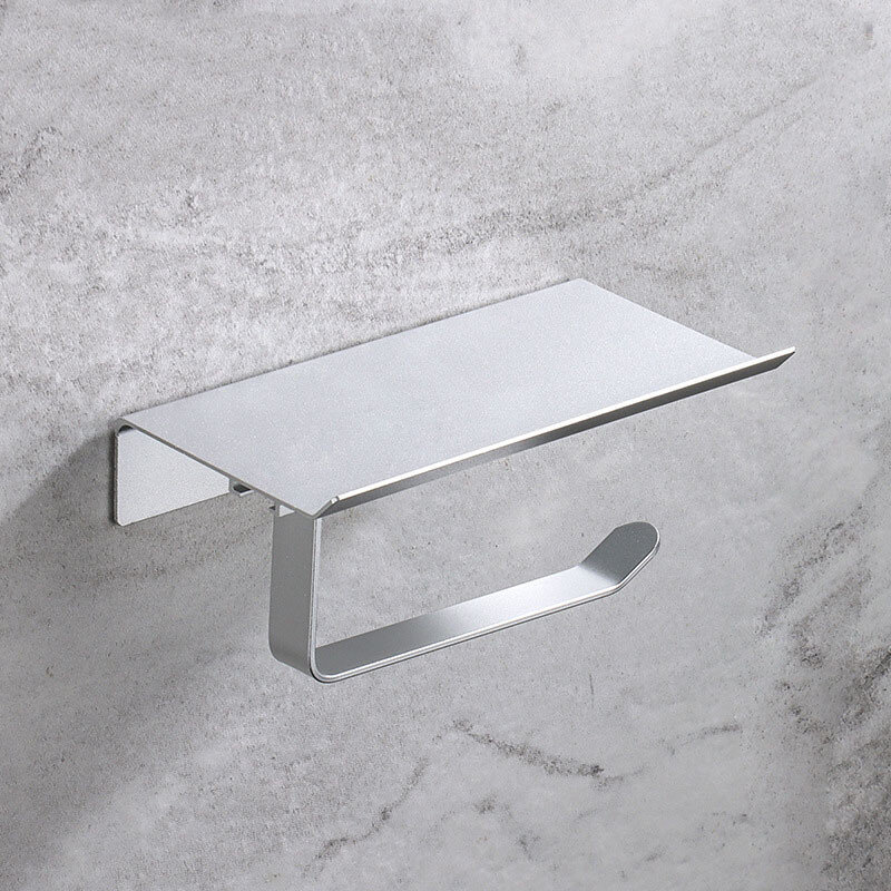 Тримач для туалетного паперу із алюмінію. Не боїться корозії. Надійне кріплення за допомогою шурупів чи клею (клей не йде в комплекті). Зверху є поличка.