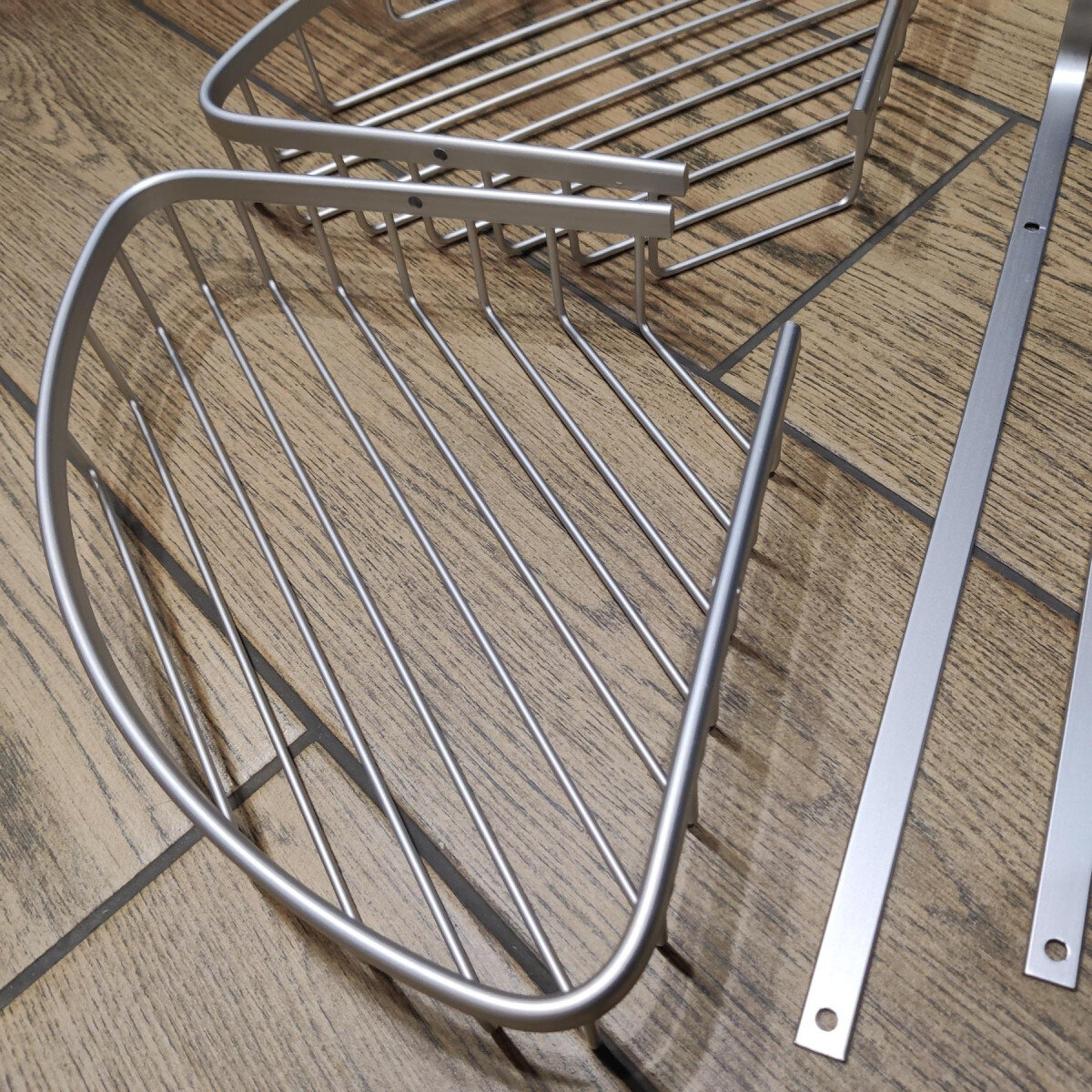 Надежная полка для ванной. Полка изготовлена из алюминия - прочная и не боится коррозии. Имеет стильный дизайн, серебристый цвет и гладкую поверхность. Нет острых краев. Поставляется в частично разобранном виде, легко собирается.