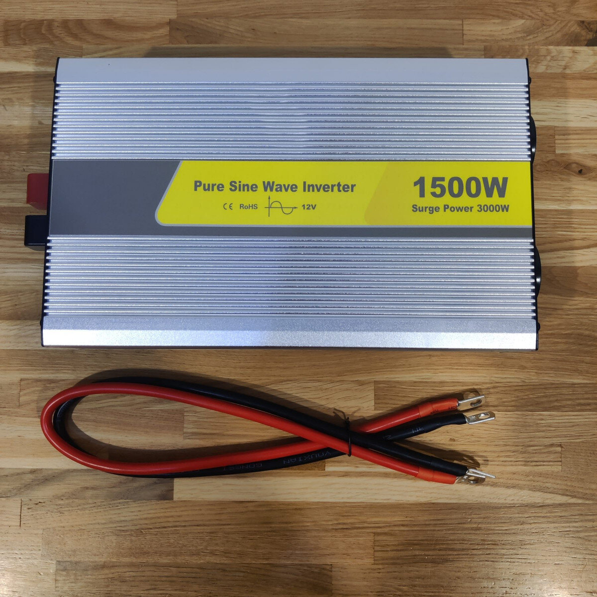 Високочастотний інвертор в алюмінієвому тепловідвідному корпусі потужністю 1500 Ватт (пік до 3000 Ватт). Є USB вихід. Живлення від акумулятора чи сонячної панелі. Є захист від короткого замикання, перевантаження, високої і низької напруги, перегріву.