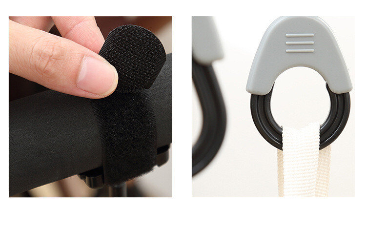 Гачки для кріплення сумки до коляски. До коляски кріпиться за допомогою липучки.