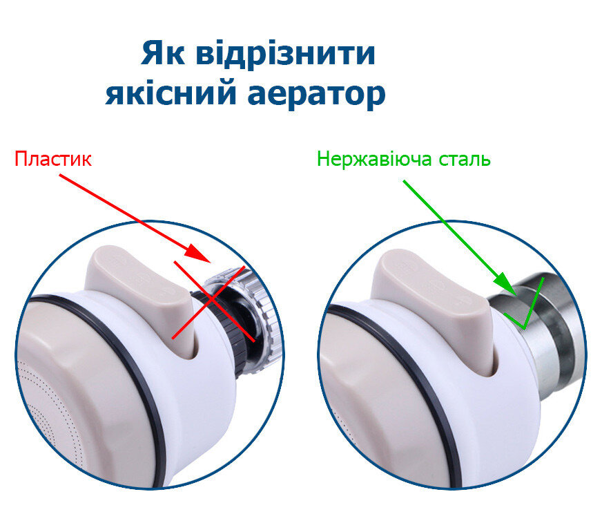 Увага! Сполучні елементи цього товару з нержавіючої сталі, тому він не зламається, що властиве аераторам із пластиковими елементами кріплення.