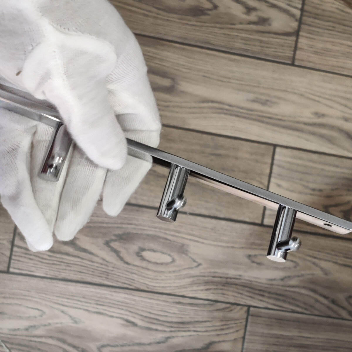 Вішалка із латуні. Виготовлена з товстого матеріалу, не гнеться. Поверхня хромована. Кріпиться шурупами.