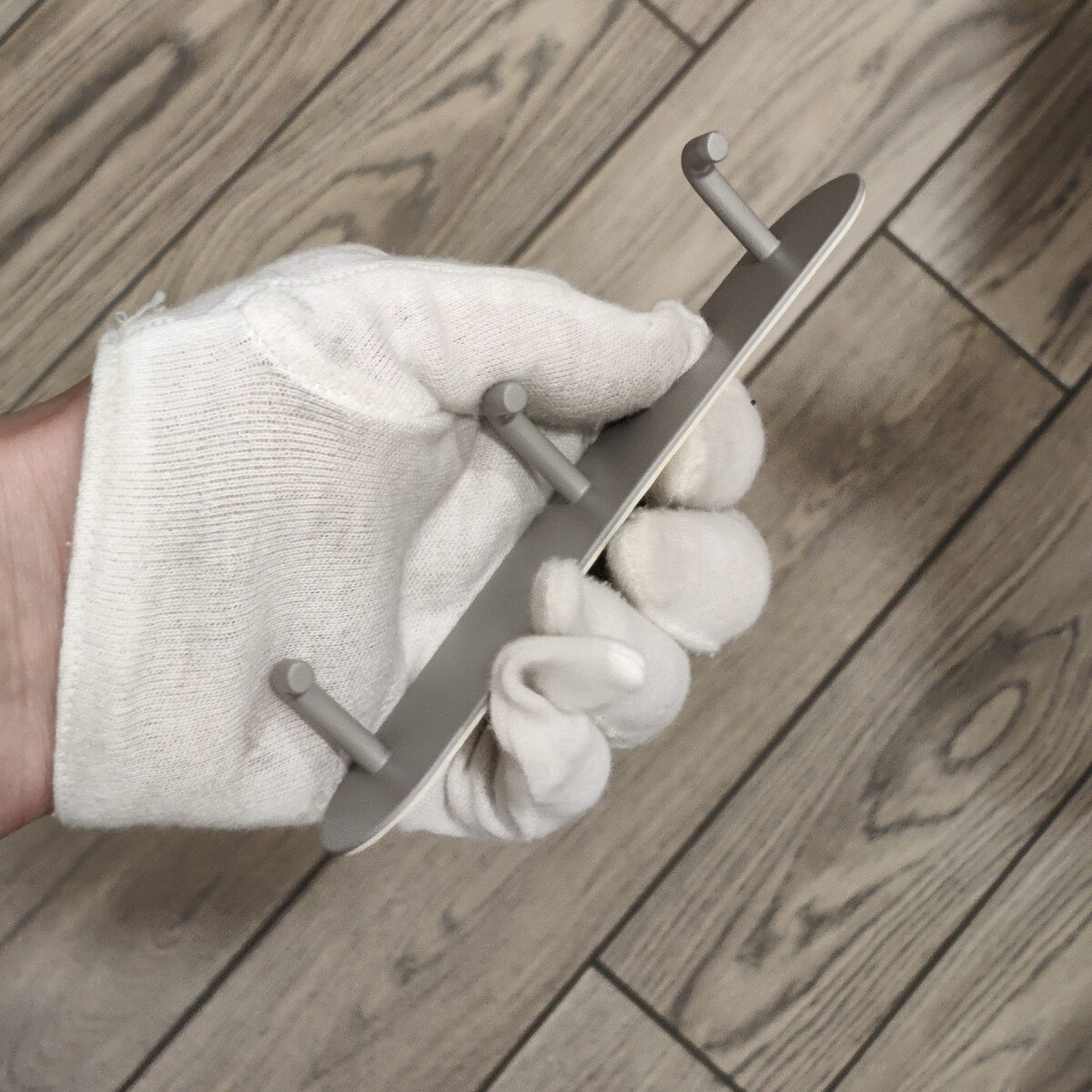 Гачок із металу, клеїться до стіни на двосторонній скотч (у комплекті).