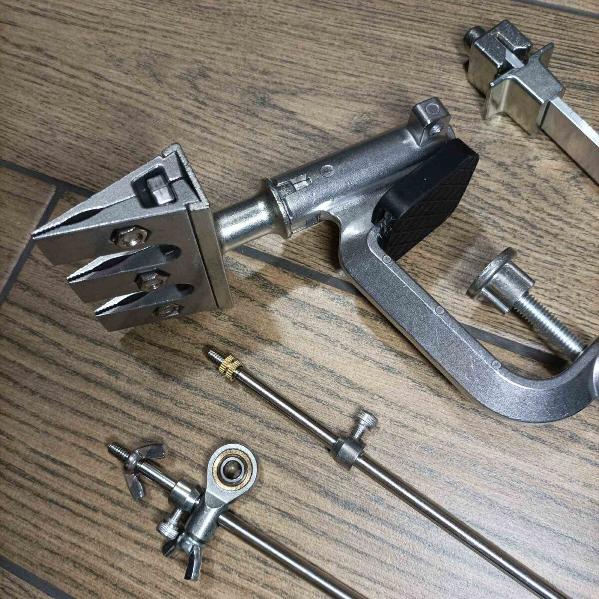 Затискач складається з трьох частин, що дозволяє затиснути будь-які ножі.