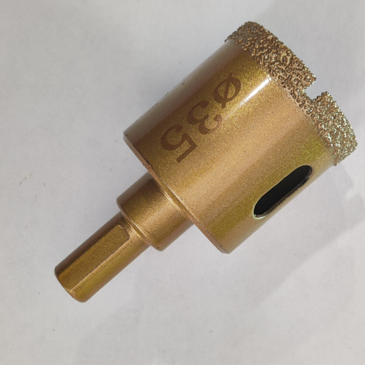 Глубина коронки - 35мм, длина алмазного покрытия - 6 мм.