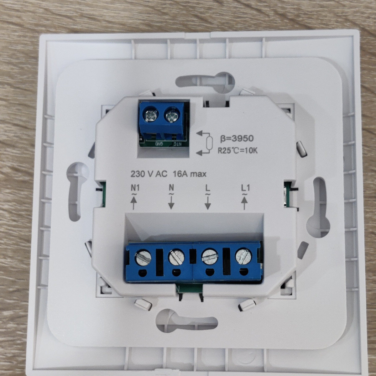 Монтаж терморегулятора простий і проводиться у стандартний підрозетник. У комплекті є інструкція/схема англійською мовою.