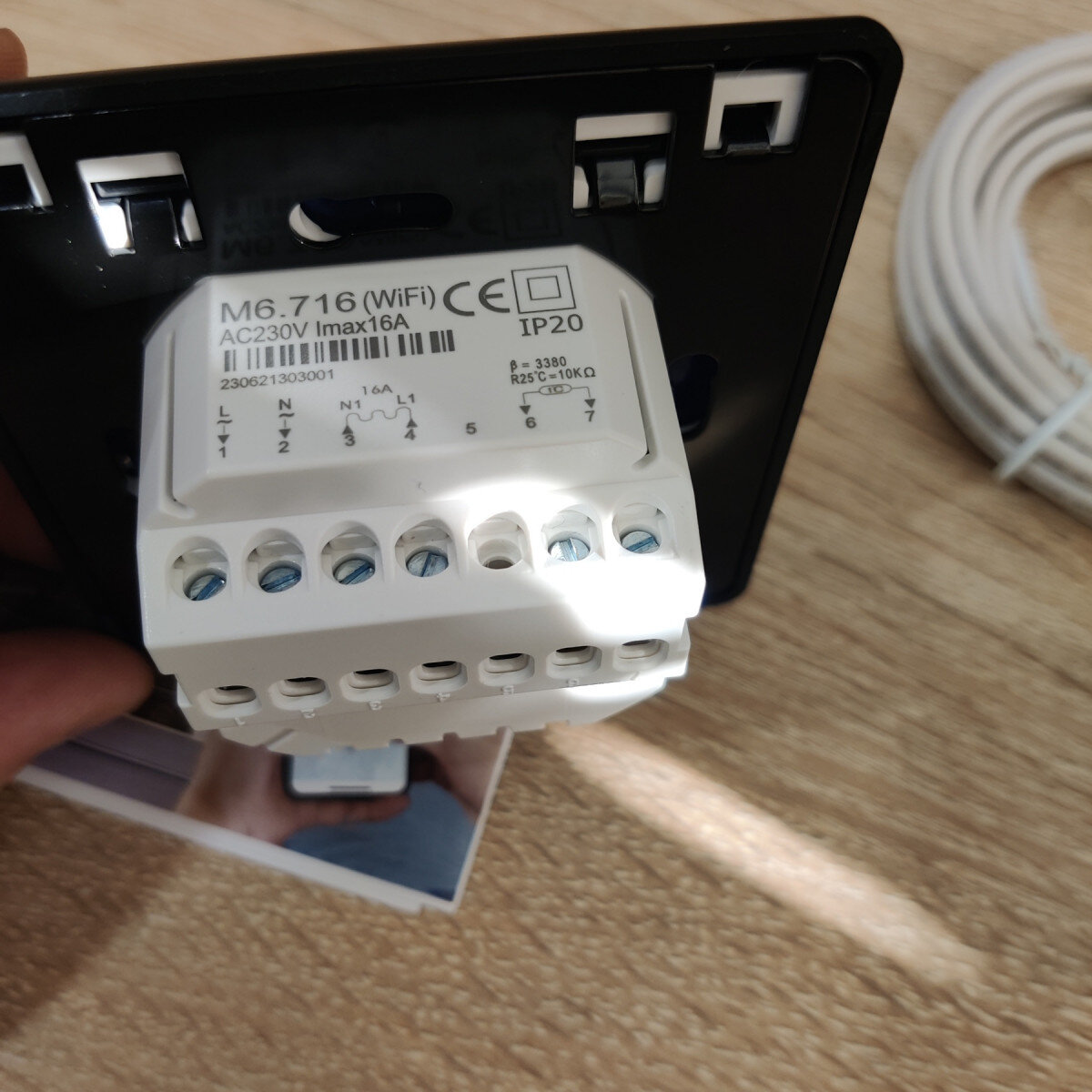 Монтаж терморегулятора простий і проводиться у стандартний підрозетник. У комплекті є інструкція/схема англійською мовою.
