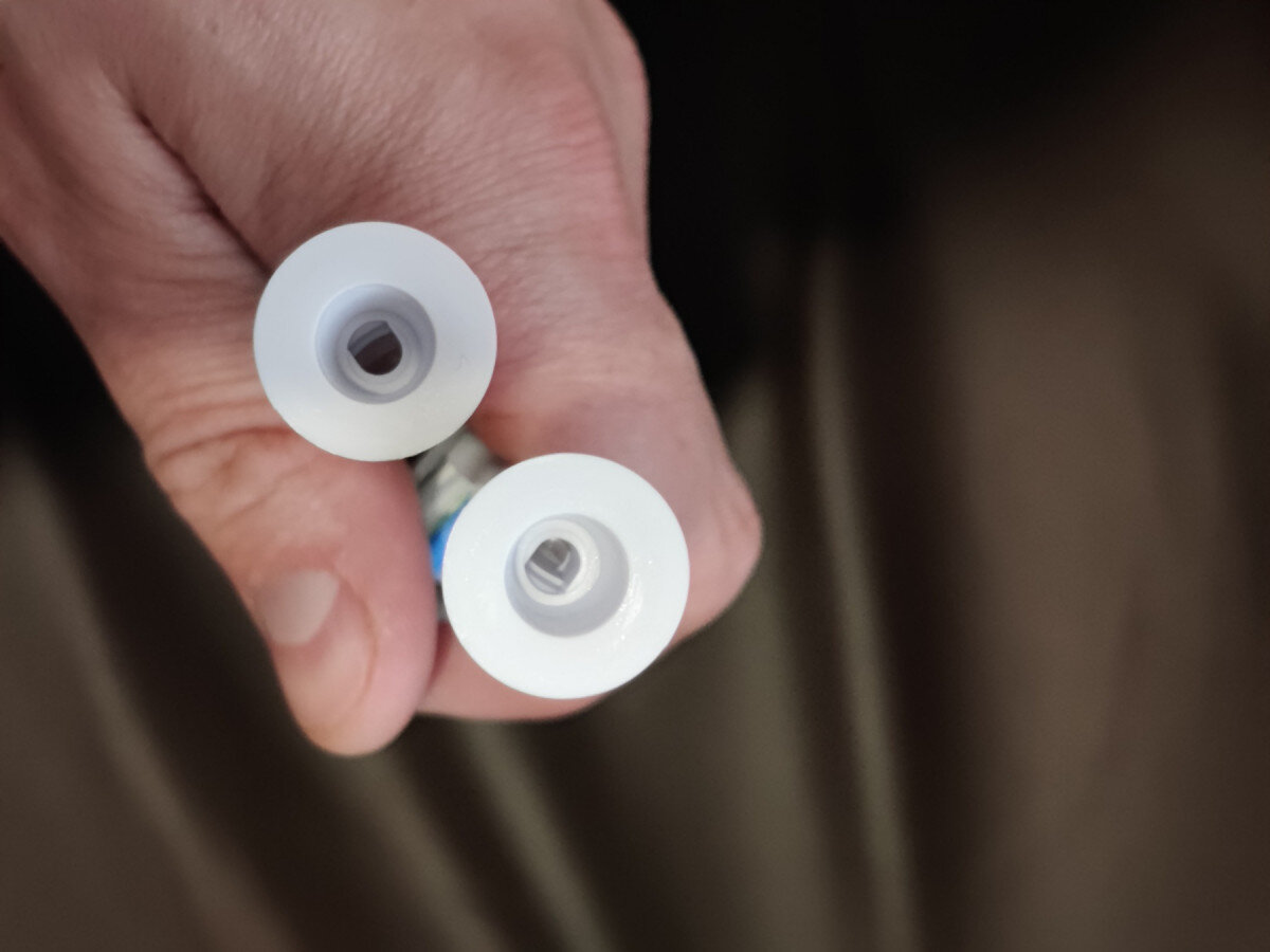 У комплект входять 2 однакові насадки, кожна з яких має захисний ковпачок .