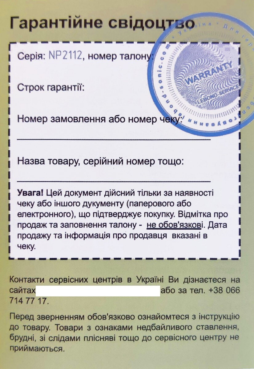 Гарантія на Nicefeel FC169 - 12 місяців (гарантійний талон).