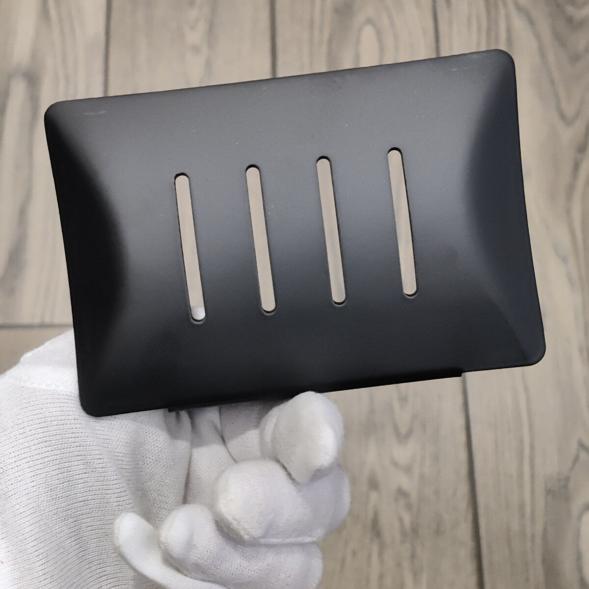 Мильниця з товстого алюмінію, жорстка та стильна. Виглядає набагато дорожче пластикових і мильниць з нержавіючої сталі. Чи не боїться корозії. Кріплення на стіну – клей. Матова фарба чудово виглядає.