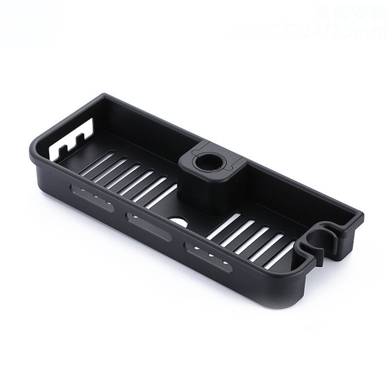 Полиця на душову стійку, виготовлена ​​із пластику. Має гачки та місце для душової лійки. Бюджетна якість, пластик стовщений, не крихкий.