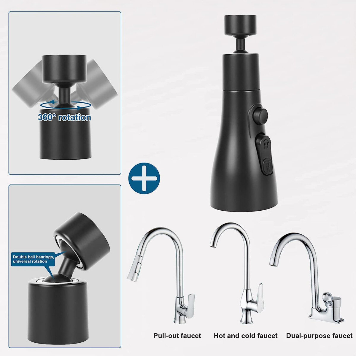 | Дополнительные характеристики | Для кухонных смесителей Возможность установки произвольной формы Изменяемый радиус действия излива Аэратор-лейка с 3-мя режимами струи |
