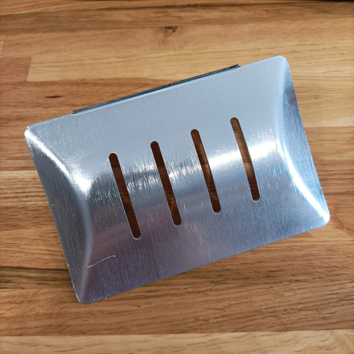 Мильниця з товстого алюмінію, жорстка та стильна. Не боїться корозії. Кріплення на стіну – клей.