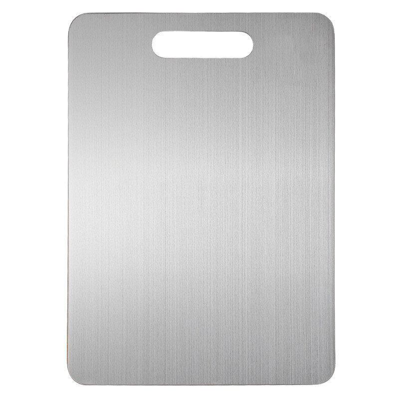 Обробна дошка з нержавіючої сталі має безліч переваг: легко миється, має великий термін служби, не вбирає запахи, не фарбується від продуктів (наприклад, від буряків), перешкоджає розмноженню бактерій. Її можна мити в посудомийній машині.