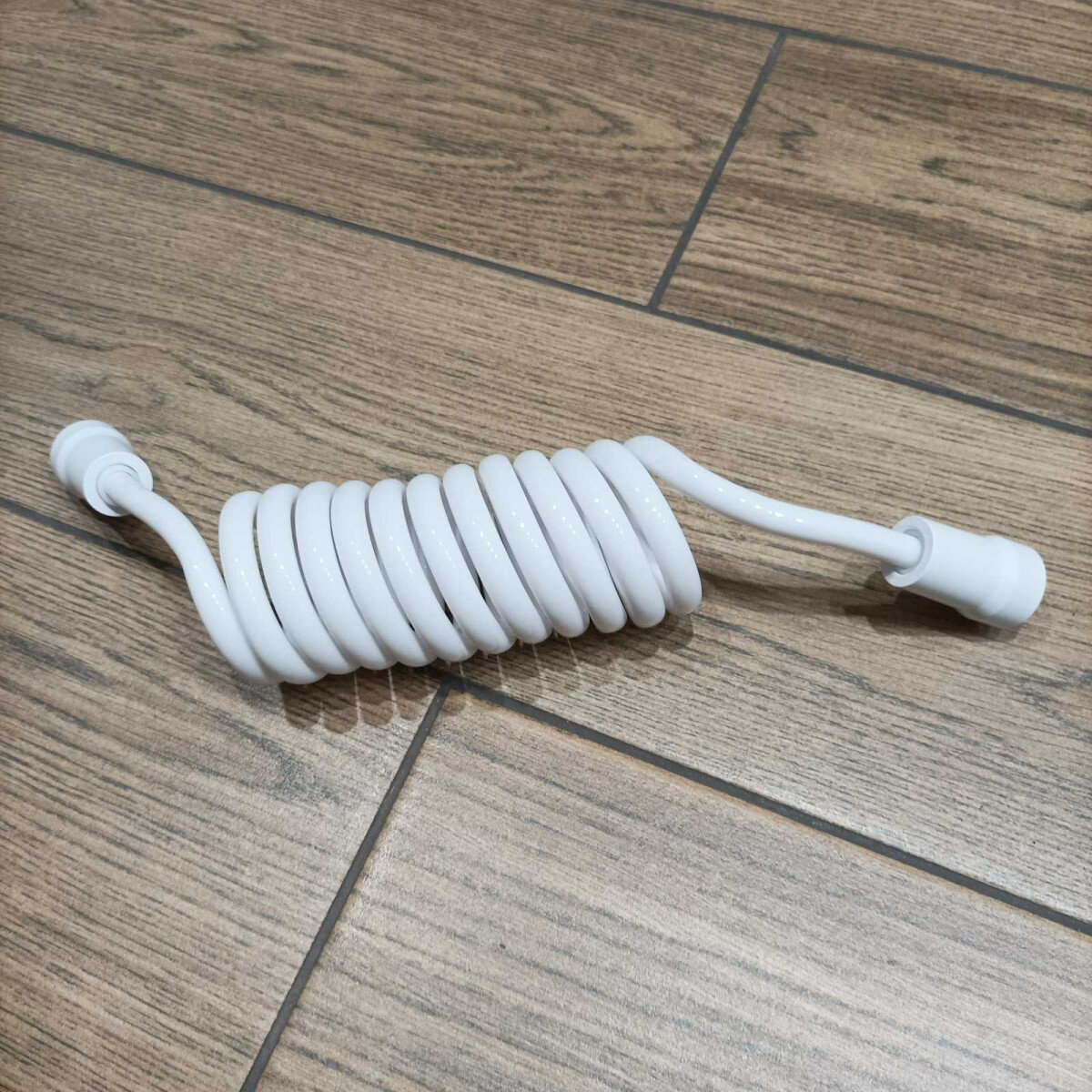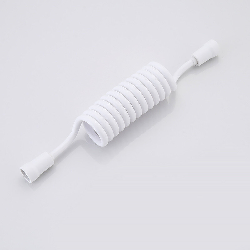 Шланг для гігієнічного душу (бідетти) спіральної форми. Не займає багато місця, після витягування повертається до попереднього положення. Гайки підключення на 1/2 дюйми, виготовлені зі спеціального пластику. Є ущільнюючі прокладки.