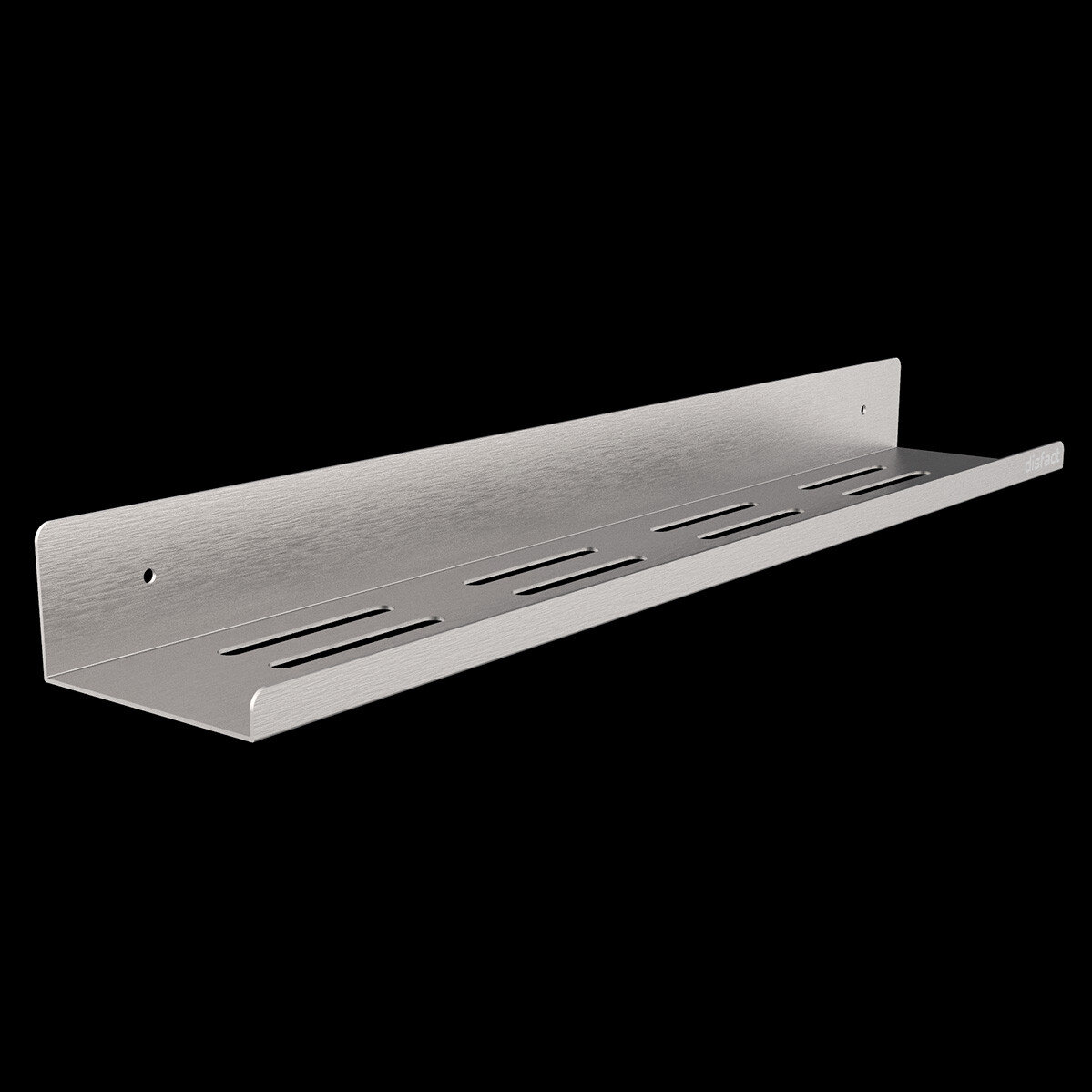 Полиця виготовлена з цільної товстостінної нержавіючої сталі (1.5 мм) — удвічі товстішої, ніж у стандартних моделей. Вона легко витримує навантаження та щоденне використання без втрати форми чи зовнішнього вигляду. Матовий фініш надає поверхні глибини й стриманого блиску, не залишаючи слідів пальців.