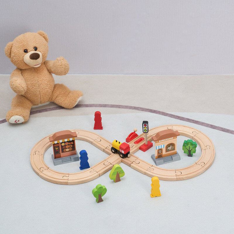 Дитяча дерев'яна залізниця — це захоплива іграшка, яка допоможе дитині поринути у світ транспорту, пригод і фантазії. Легко та швидко зібравши дорогу з деталей набору, малюк зможе запускати потяг у подорож, змінювати маршрути, з’єднувати рейки та створювати власні ігрові сценарії.
