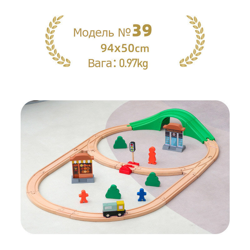 Дитяча дерев'яна залізниця — це захоплива іграшка, яка допоможе дитині поринути у світ транспорту, пригод і фантазії. Легко та швидко зібравши дорогу з деталей набору, малюк зможе запускати потяг у подорож, змінювати маршрути, з’єднувати рейки та створювати власні ігрові сценарії.