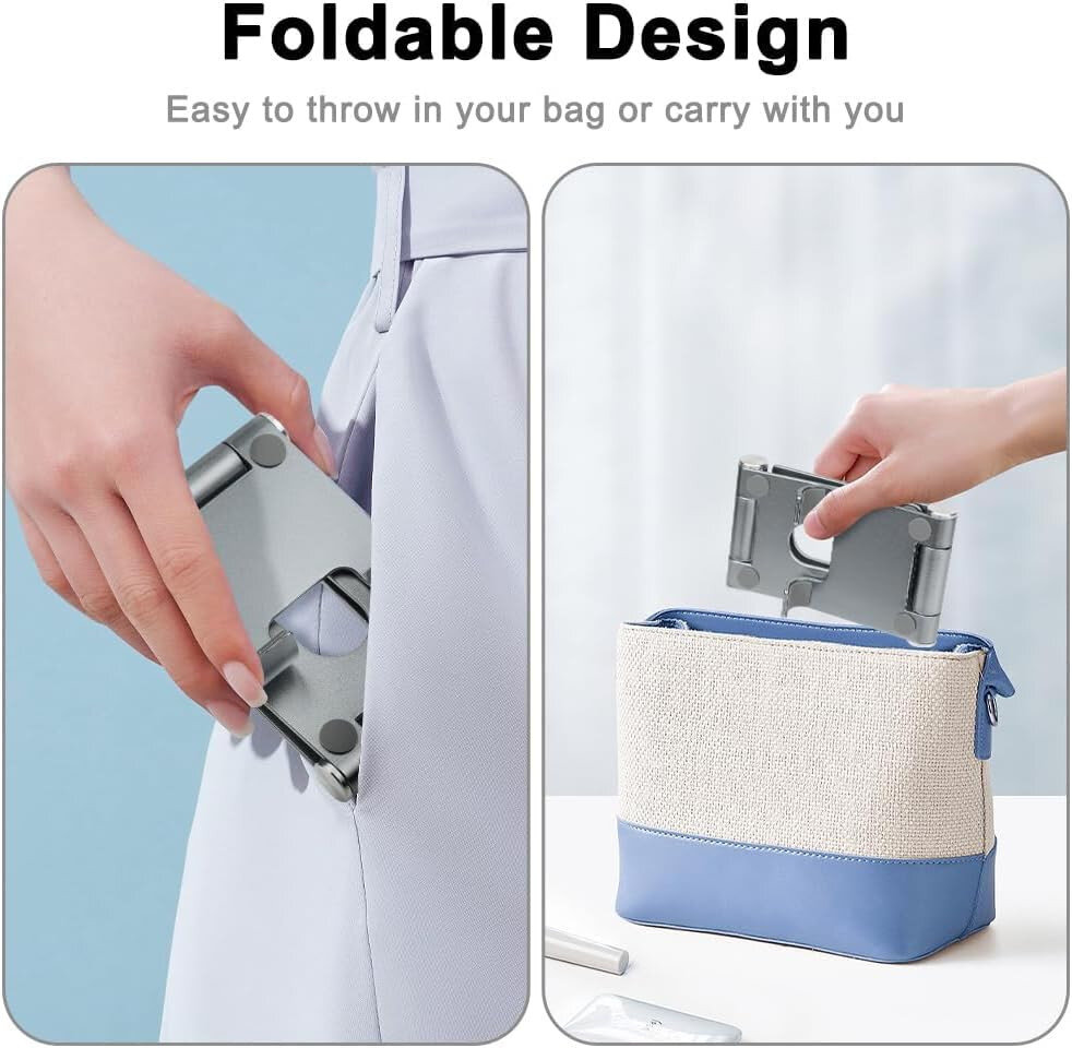 Складна і легка підставка з анодованого алюмінію, що підтримує смартфони, планшети та e‑ридери від 4 до 10 дюймів. Має регульований кут нахилу й поворот на 360°, підходить для перегляду відео, відеодзвінків або читання без утримання пристрою руками.
