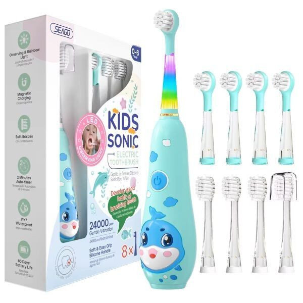 Подаруйте вашому малюку справжнє задоволення від чистки зубів з нашим Seago SG-2139 — кольорові LED підсвітки й м’які матеріали створюють теплу, дружню атмосферу і перетворюють усе з ритуалу на веселу гру.