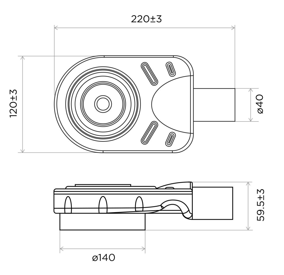 Сифон розрахований на стандарт 50 мм: і підключення до каналізаційної труби, і діаметр зливу зі сторони трапа/зливу становлять 40 мм. Компактна конструкція спрощує монтаж, а щільна посадка з’єднань забезпечує надійність за умови правильного встановлення.