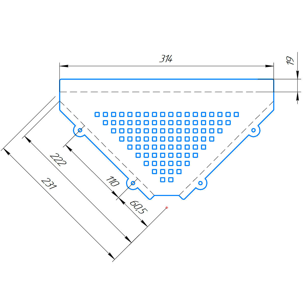 - Розміри борта: ширина 314 мм, висота 19 мм