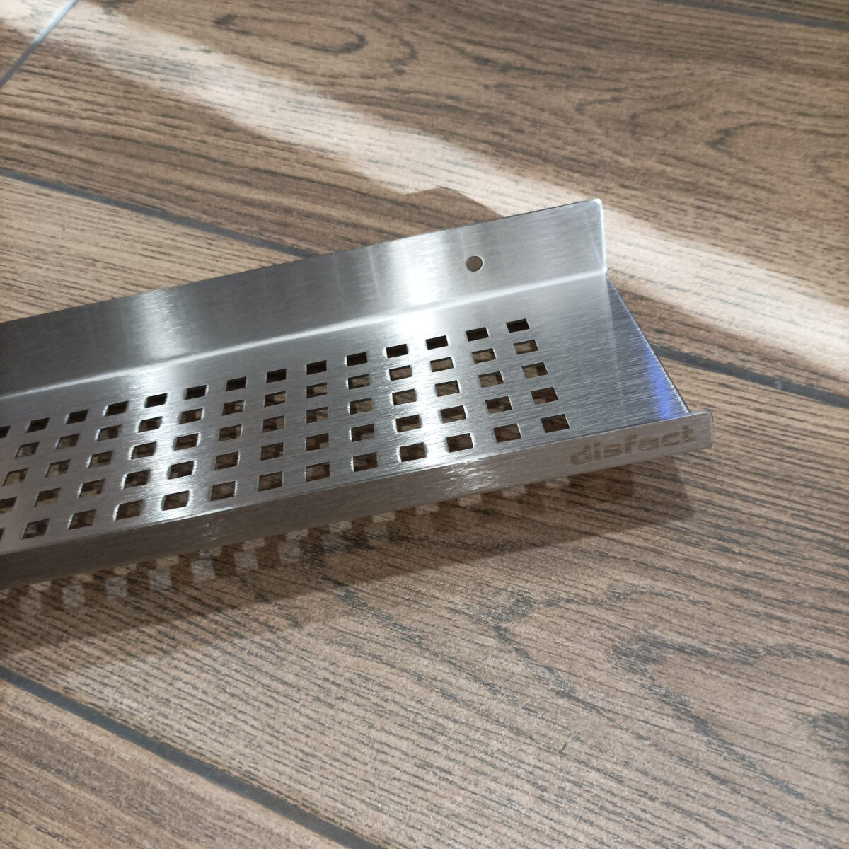 Нержавіюча сталь гармонійно поєднується з плиткою, склом, деревом або бетоном. Поличка чудово доповнює інтер’єри в стилі лофт, сканди чи хай-тек, і так само доречно виглядає в класичних ванних — завдяки стриманій елегантності.