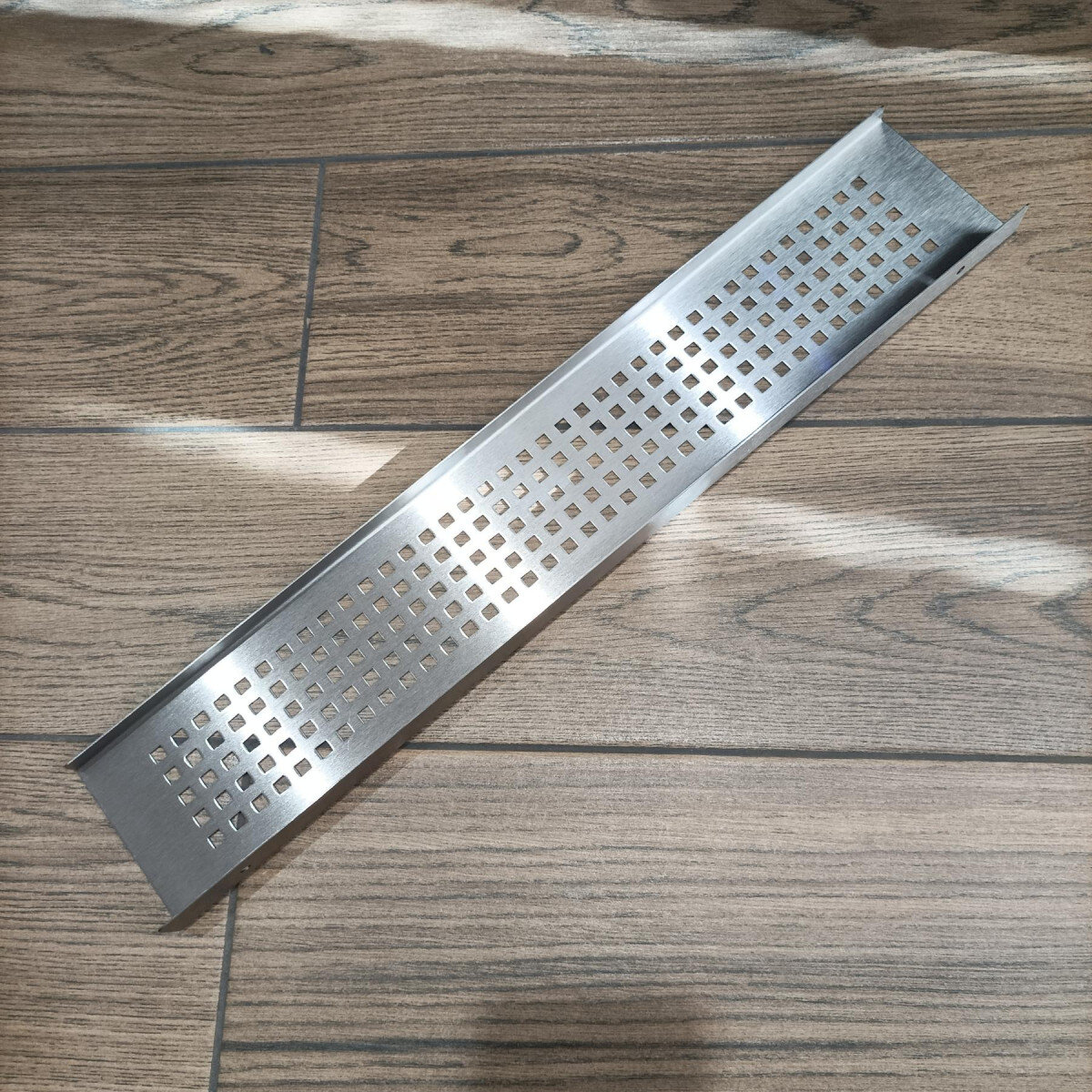 - Квадратні прорізи на дні — вода не застоюється, а повітря вільно циркулює, тому поличка довше залишається чистою.