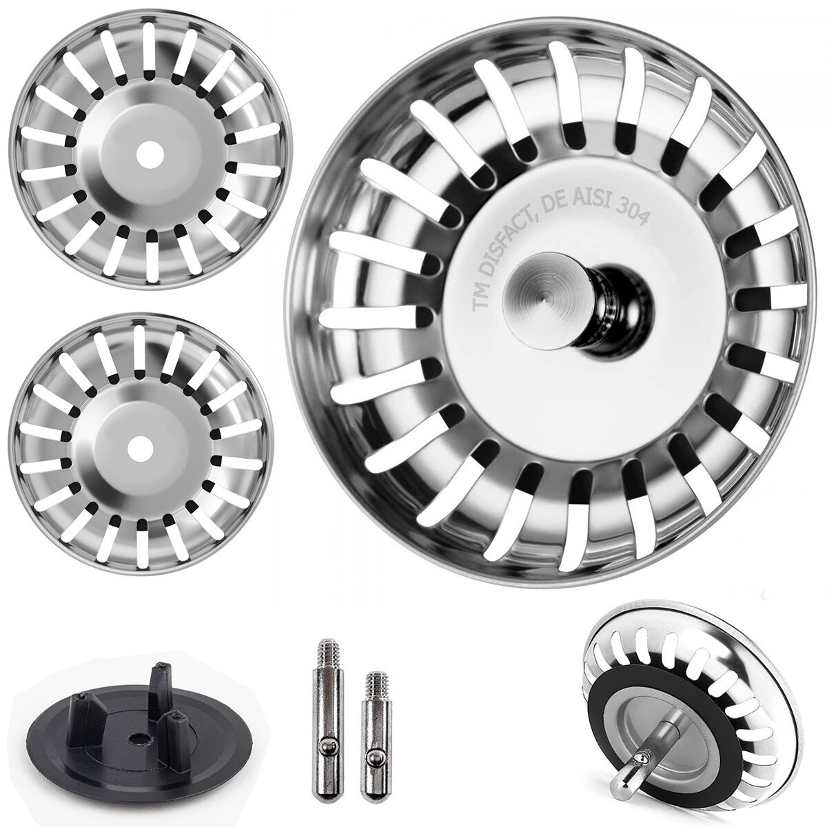 Сітки виготовлені з нержавіючої сталі AISI 304, яка відзначається високою стійкістю до вологи, корозії та впливу побутової хімії. У порівнянні з простішими марками нержавіючої сталі, AISI 304 краще підходить для щоденного використання на кухні, де деталі постійно контактують із водою та мийними засобами.