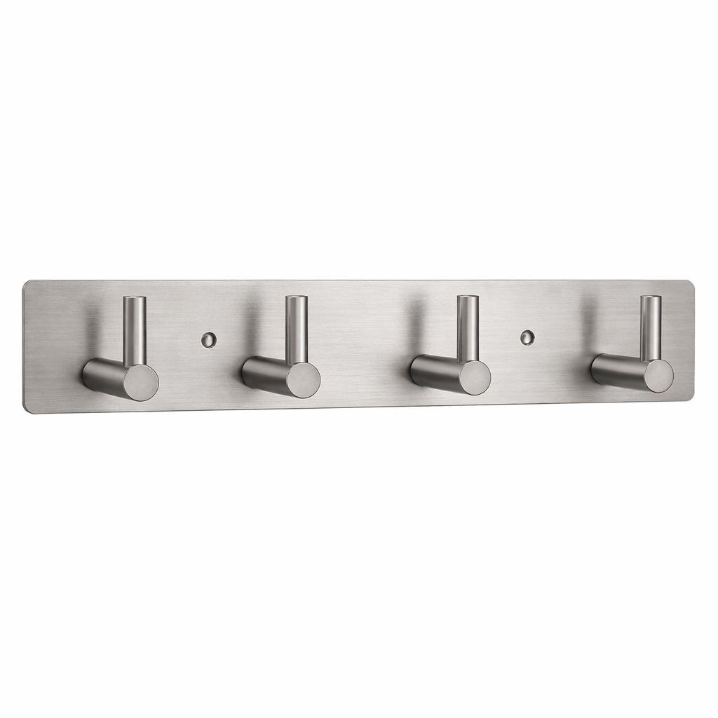 Вішалка з нержавіючої сталі на 4 гачки — практичне та надійне рішення для ванної кімнати, кухні, передпокою або гардеробної. Завдяки широкій основі конструкція відзначається підвищеною жорсткістю, не деформується під час використання та виглядає акуратно в сучасному інтер’єрі.