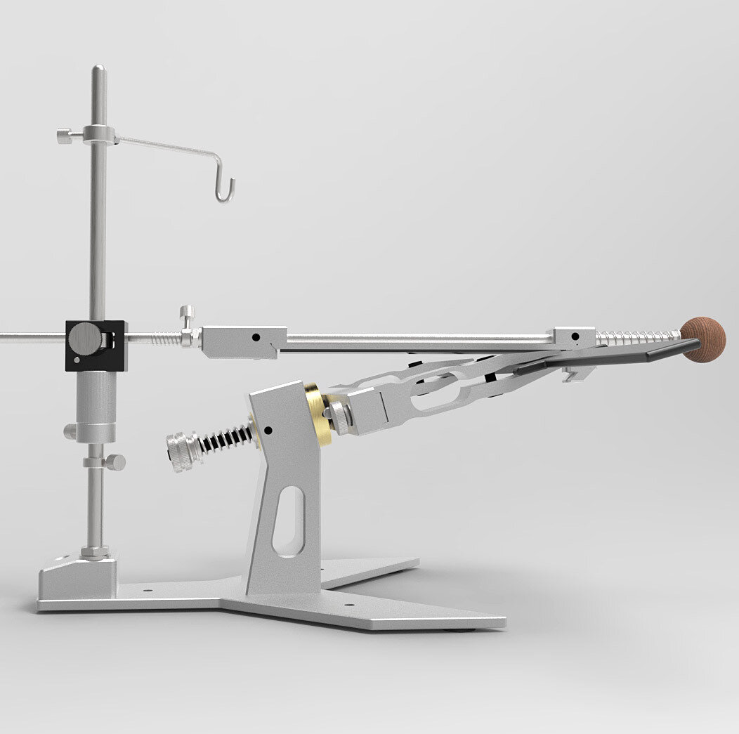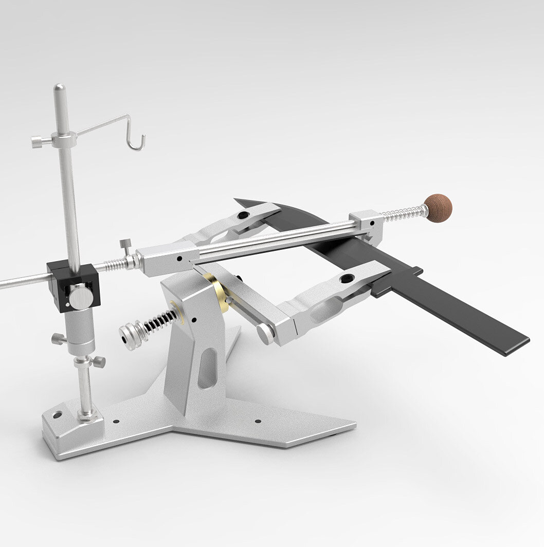 Верстат оснащений широкою рамкою для губок 18 см та губками довжиною 90 мм, що забезпечує надійний затиск клинка. Підтримується заточка в діапазоні 20–60°, а також передбачена можливість заточки в лінзу. Максимальна ширина клинка, що заточується, — до 45 см.