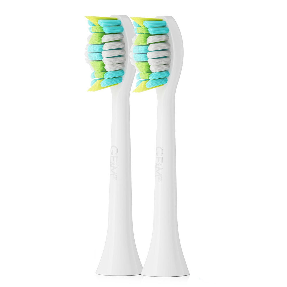 | Особенности | 2 сменные насадки GEM Щетина Tynex DuPont (США) Стандартный размер Для ежедневной чистки Удаление зубного налета Высокая/средняя жесткость щетины Рекомендуется менять каждые три месяца |