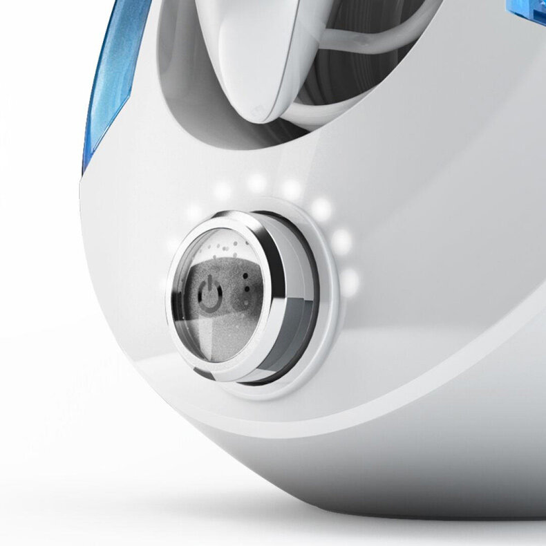 колба у вигляді краплі (500 мл), не збирає на собі пил, легко знімається, що зручно для заповнення її водою; не вимагає відключення харчування і перенесення пристрою. Кришка гумова з отвором для подачі повітря всередину.