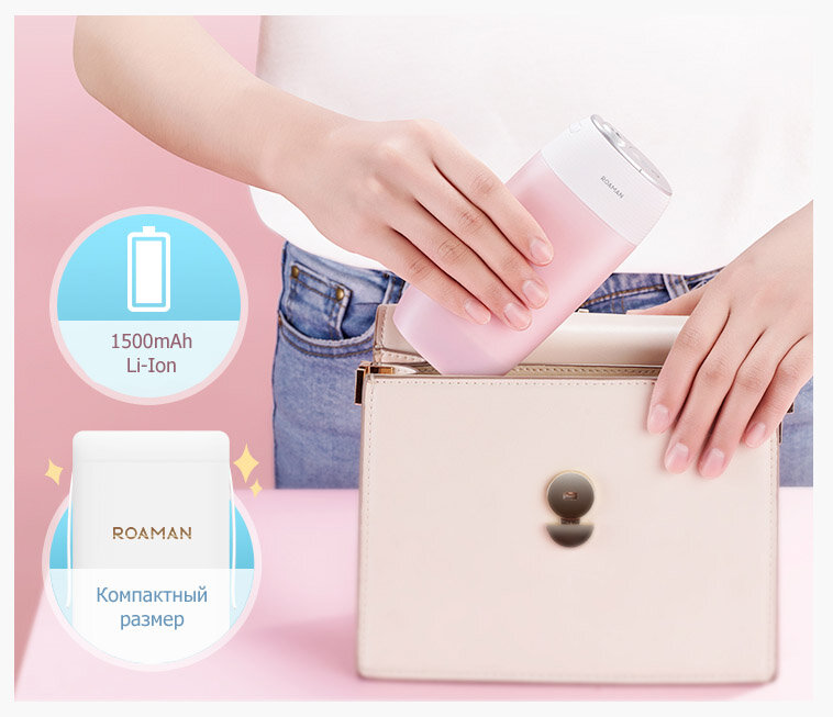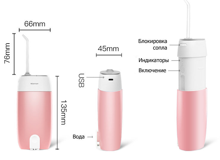 ROAMAN SmartJet Pink - компактний, потужний і надійний іригатор. Вдвічі менше звичайного портативного іригатора, на 15% потужніше, і лише на 30мл менше ємність резервуара для води.