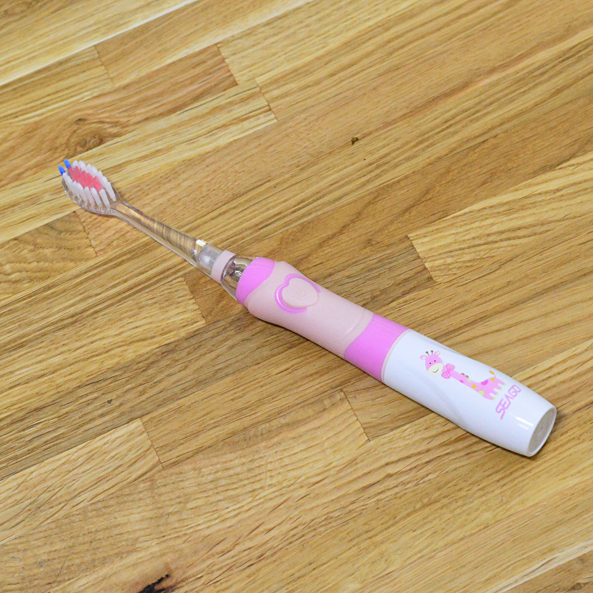 Дитяча зубна щітка призначена для дітей віком від 3-х років. Працює за звуковою резонансною технологією із частотою вібрацій 16 000 за хвилину. Для дітей це безпечно та ефективно. У виготовленні зубної щітки використаний безпечний ABS та TPE пластик, щетина – Soft Dupont Nylon. Зубна щітка працює на одній батарейці формату ААА понад місяць. Для привернення дитячої уваги є підсвічування.