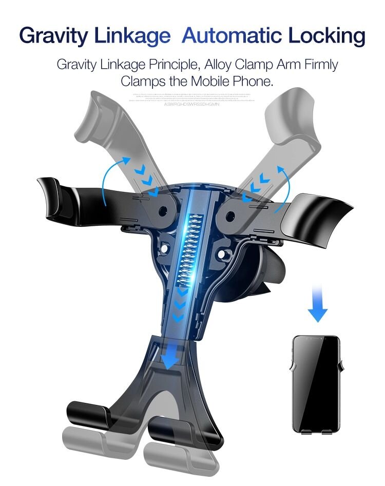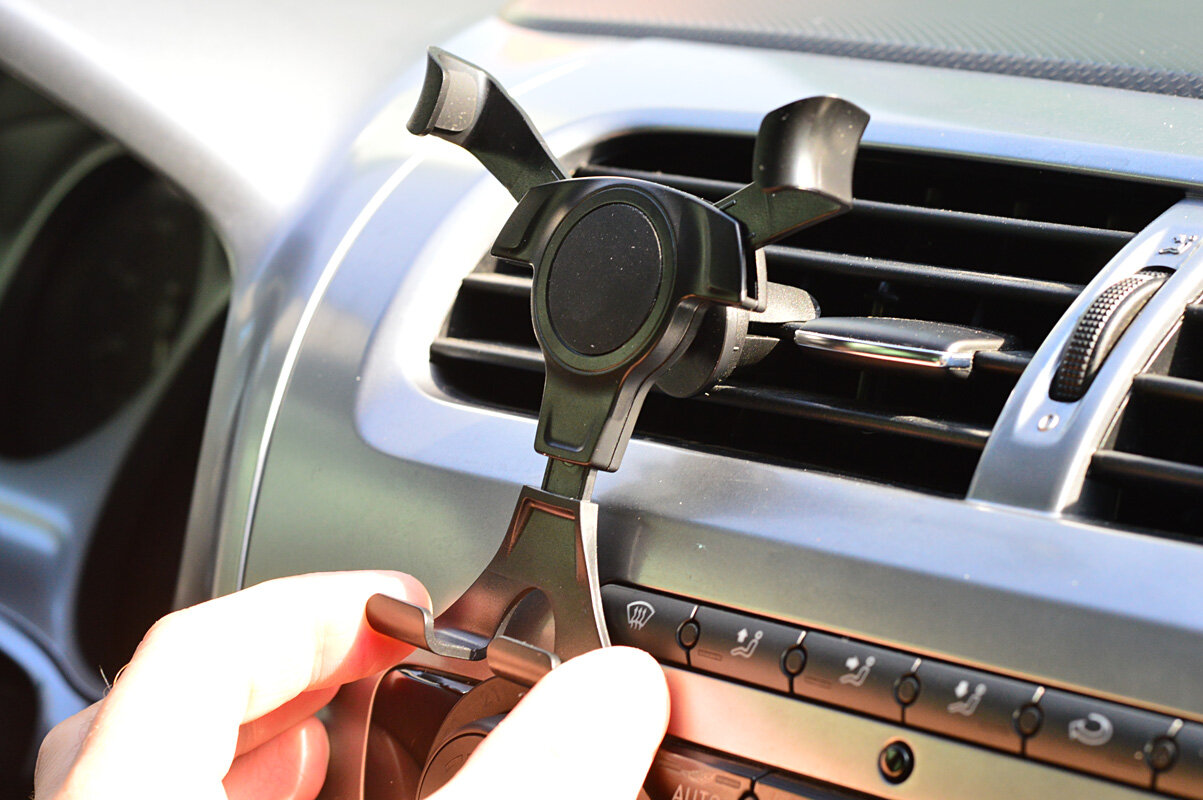 Главная особенность этой модели — механизм захвата телефона. Вы просто устанавливает телефон в держатель, а боковые зажимы сами прижимают его.