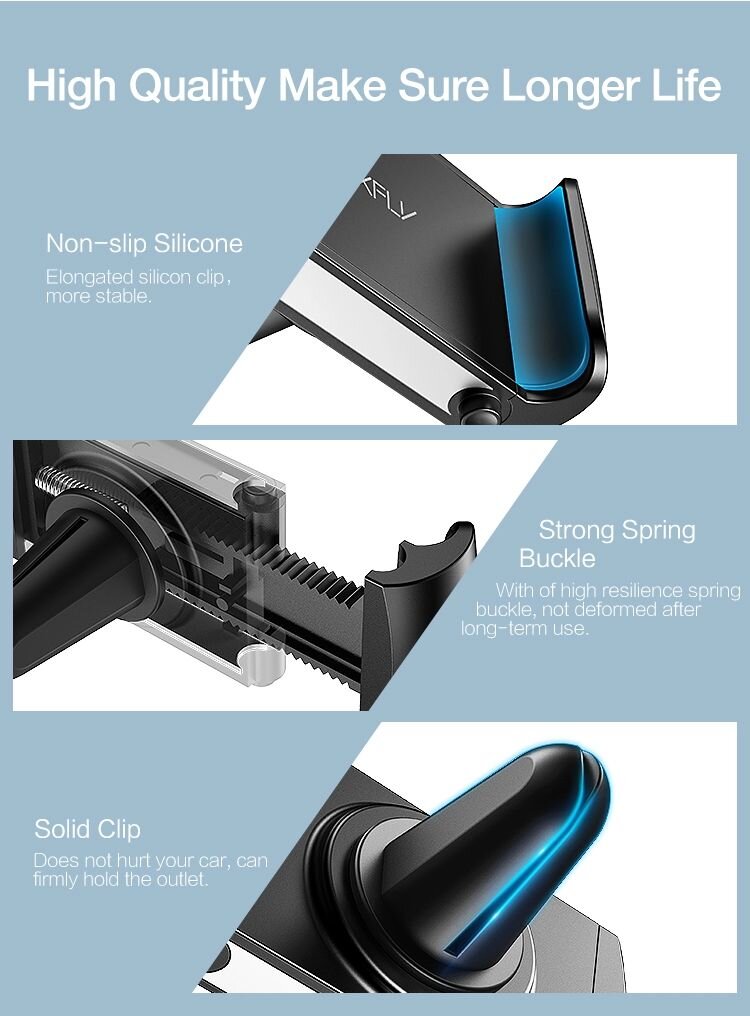 Держатель для телефона RAXFLY крепится на дефлектор с помощью металлической пружины, снаружи которой находится силиконовое покрытие. Такой крепеж не «разбалтывается» со временем, легко устанавливается и снимается.