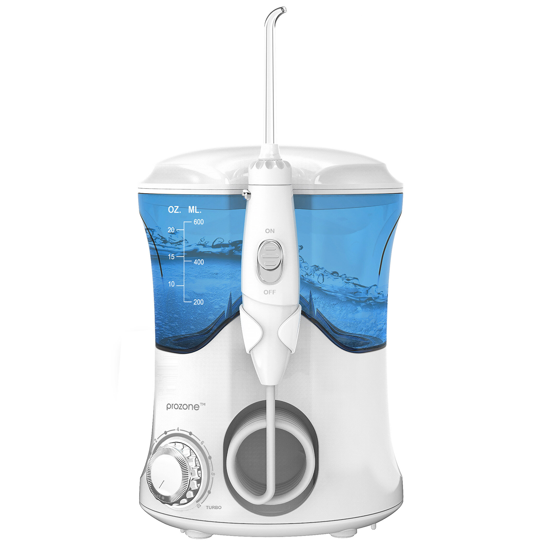 4. Система подачі води ON/OFF slider button. Це надійна конструкція з кнопкою слайдером, яку непотрібно утримувати під час процедури іригації ротової порожнини. В іригаторі використовується спеціальний жорсткий шланг, який гарантує передачу необхідного рівня тиску до змінної насадки.