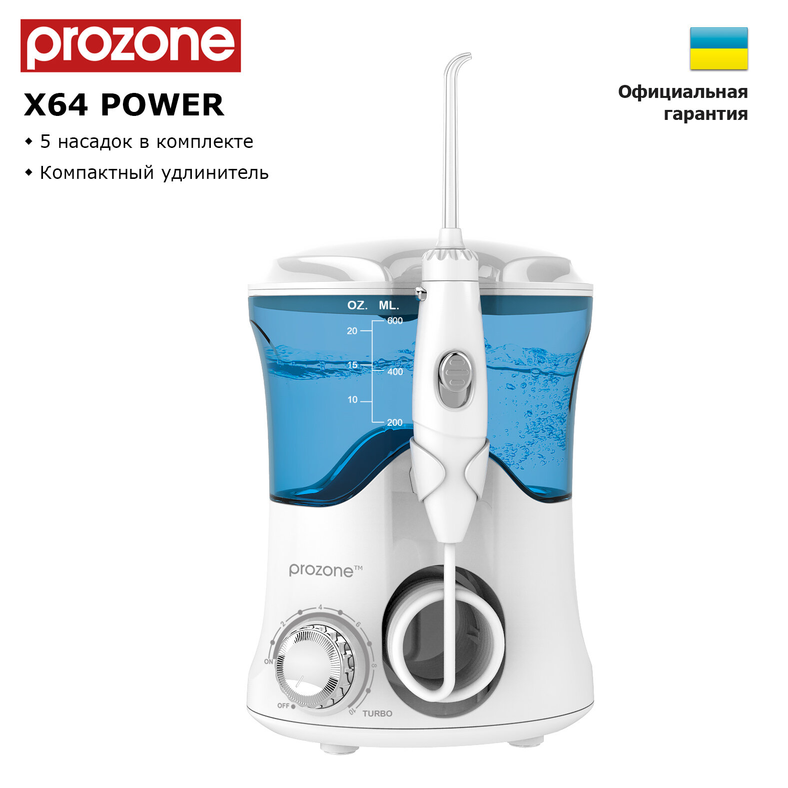 ProZone X64 POWER - іригатор ротової порожнини з електронною системою управління, потужною помпою і професійними соплами.