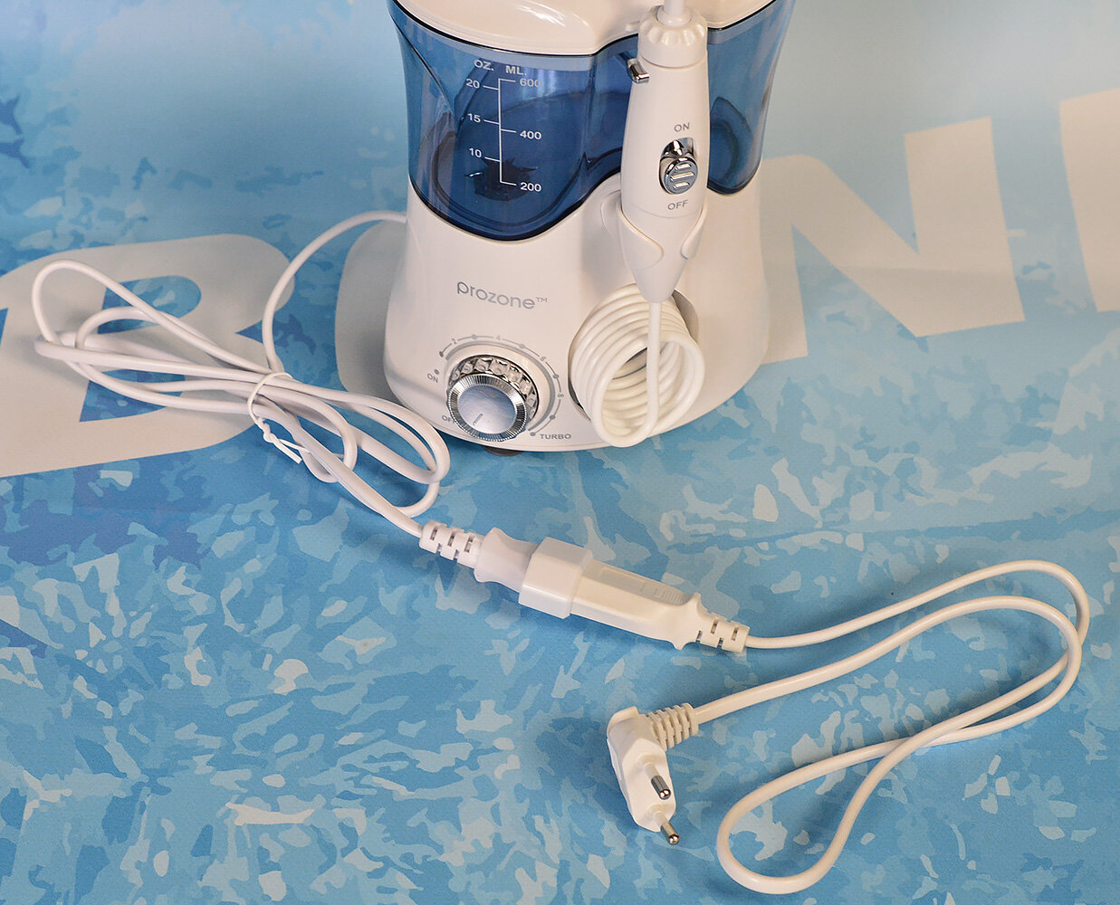 Іригатор Прозон обладнаний надійним вологозахищеним адаптером живлення. Пристрій можна використовувати від мережі 110 або 220 Вольт.